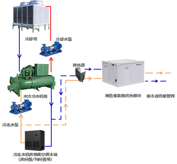 圖1 機房冷凍水側余熱回收供暖原理