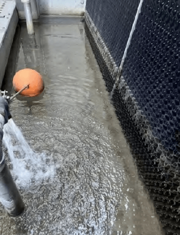 開式塔在常規(guī)冷凍水系統(tǒng)中使用較普遍,優(yōu)點(diǎn)之一價(jià)格較低。其次,開式塔系統(tǒng)簡(jiǎn)潔,不需要閉式系統(tǒng)的定壓裝置,沒有噴淋泵,無需添加乙二醇防凍,運(yùn)行維護(hù)簡(jiǎn)單。且同等工況下設(shè)備功率低,甚至可以選擇一些無風(fēng)機(jī)冷卻塔來搭配運(yùn)行,可以把PUE降到極致。但開式塔最大的缺點(diǎn)就是循環(huán)水與外界環(huán)境直接接觸,需重點(diǎn)關(guān)注水質(zhì)處理,目前開式塔系統(tǒng)水質(zhì)控制好和壞的案例均存在,一方面是水處理廠家參差不齊的原因,另一方面是碳鋼管道自身在開式系統(tǒng)中容易腐蝕。筆者有幸參與開式塔系統(tǒng)水質(zhì)控制良好的項(xiàng)目,見圖 8水質(zhì)清澈良好。具體措施為采用鍍鋅管道法蘭連接,而非采用碳鋼管道外表面刷防銹漆的方式,采用鍍鋅管道的系統(tǒng),日常運(yùn)行只需要應(yīng)對(duì)結(jié)垢和夏季藻類細(xì)菌滋生的問題,水處理的成本大幅降低。且使用鍍鋅管道造成的成本增加不到管路成本的10%,完全可以從水處理減少的費(fèi)用中來覆蓋這部分增加。通過如上措施,不但能節(jié)約成本,還能良好的控制水質(zhì),以及減少水處理化學(xué)品的使用。