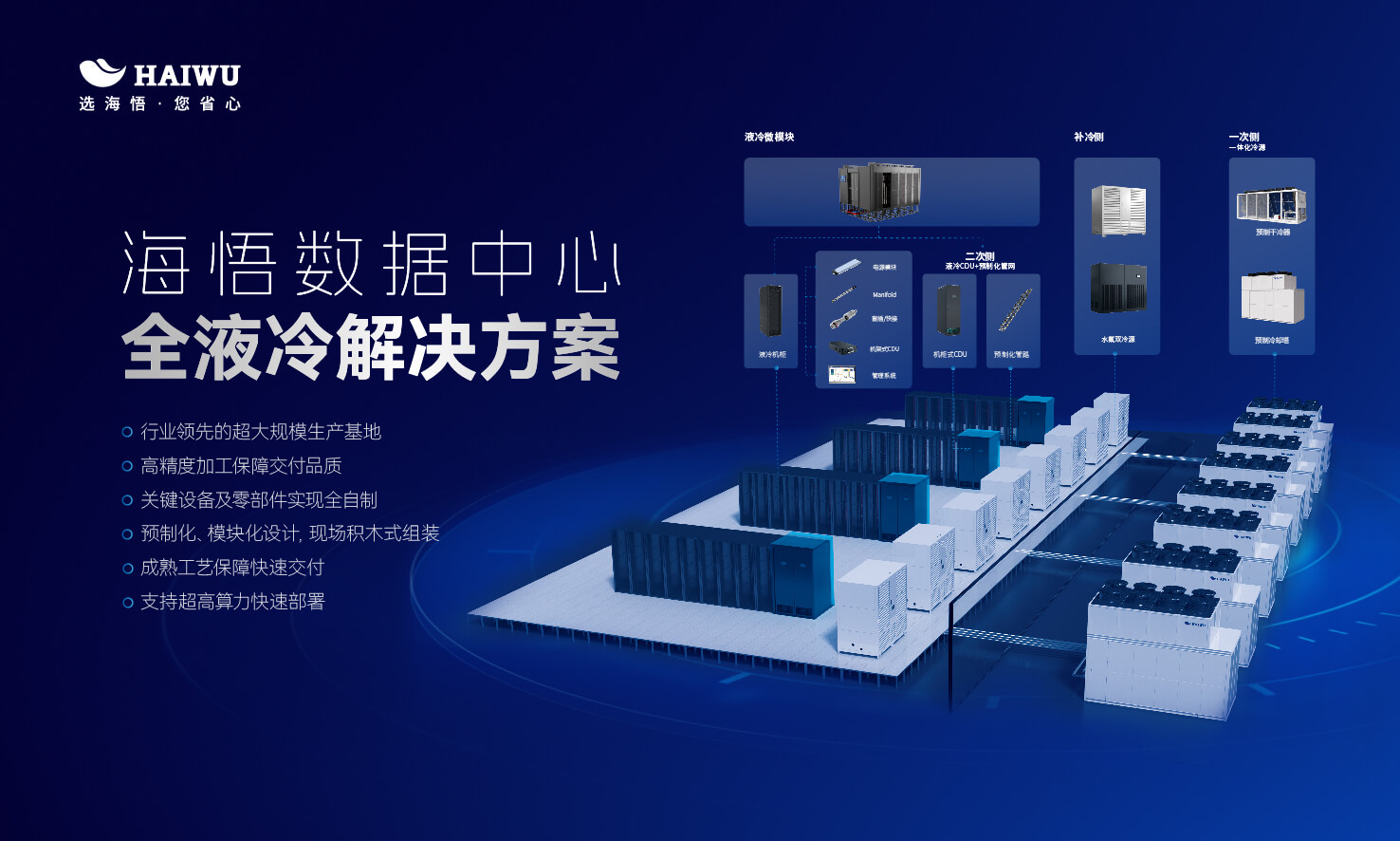 海悟專注數據中心液冷溫控解決方案及產品。涵蓋通信、 IDC(液冷)、儲能、清潔能源產業群。作為具備自主研發實力的國家高新技術企業,海悟擁有建筑工程設計甲級資質的咨詢設計研究院、超300人的高水平研發團隊及2萬m²研發測試實驗室,獲得工信部頒發的“國家級工業產品綠色設計示范企業”、“國家綠色供應鏈管理企業”“制造業單項冠軍企業”及國際紅點獎、iF設計獎等諸多榮譽,贏得了客戶以及合作伙伴的廣泛認可與信賴。