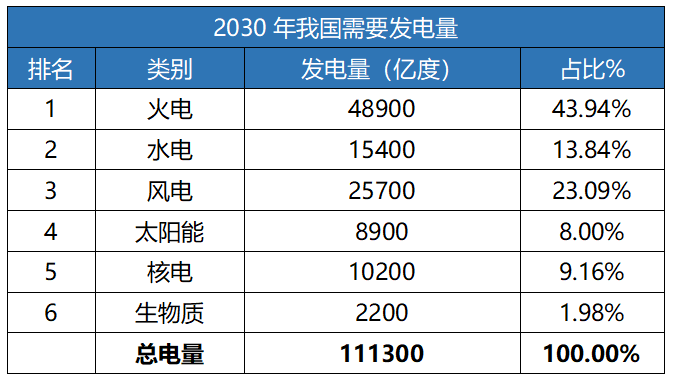 我們不難看出未來2030年火電比例要大幅度下降至45%以下,核電和太陽能要翻一倍多,風(fēng)電要從8.44%增長至23%,近乎翻了三倍,可見風(fēng)電、太陽能、核電將是未來主要擴展的電力資源。水電增長不大,生物質(zhì)能可以忽略不計。所以在數(shù)據(jù)中心綠電的使用上,風(fēng)電和太陽能成為絕大部分數(shù)據(jù)中心未來綠電的主要電力。