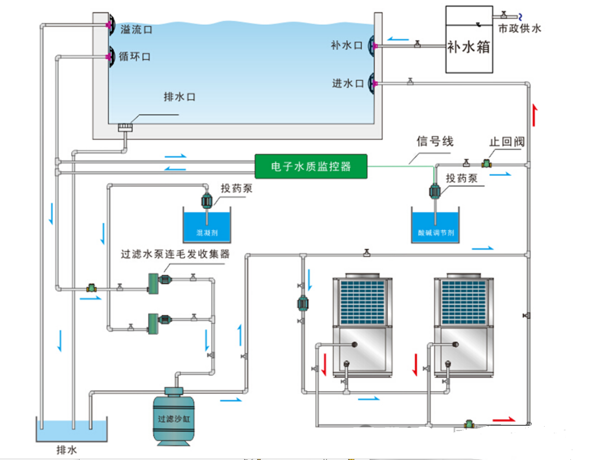 連接主機與水箱之間的水泵、閥類、過濾器等部件,確保管路連接牢固無泄漏。